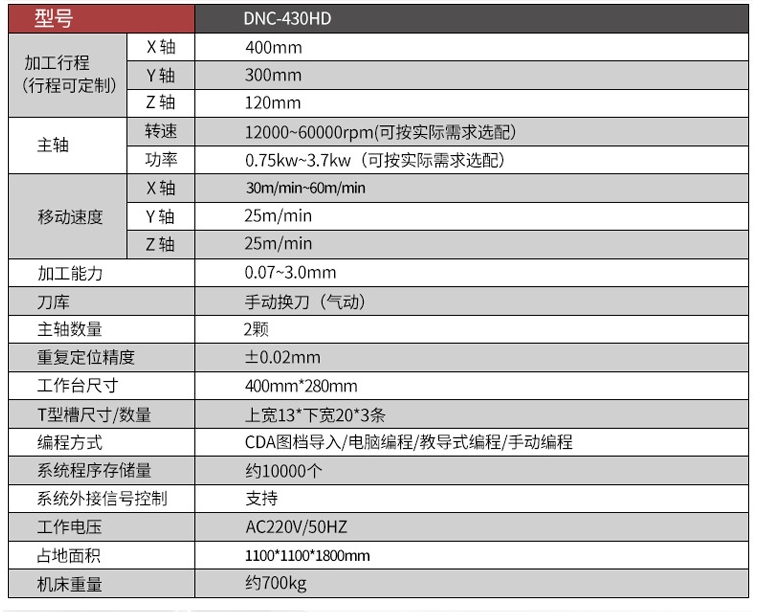 采用60000轉高速主軸,能加工0.07-3.0mm之間的孔徑