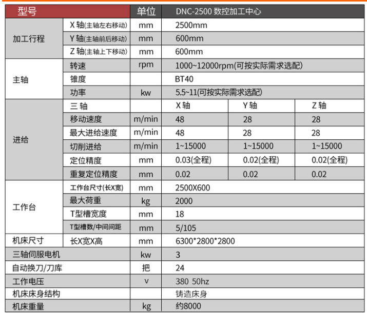DNC-2500數控鉆攻中心整機絲桿導軌選用臺灣上銀品牌、精度保持性好。各傳動軸添加自動潤滑油泵,系統定時定量打油,無需人工保養。